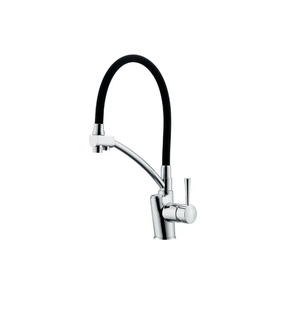 Cмеситель для кухонной мойки Gappo G4398-11 с подключением фильтра питьевой воды - однорычажный смеситель из латуни с хромированным покрытием, с гибким изливом из силикона. Излив фиксируется в держателе, в котором расположен водовод для фильтрованной воды, и легко вынимается из него при необходимости. Смеситель подключается к системе очистки воды.