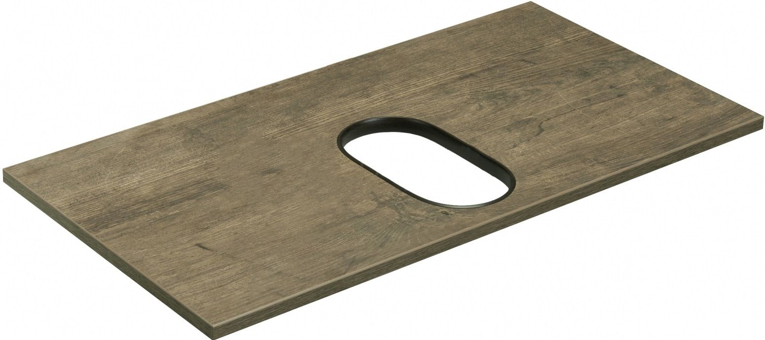 Столешница Лофт Фабрик в цвете Дуб Кантри выполнена из влагостойкой ламинированной плиты. Столешница является необходимым дополнительным элементом для тумбы Лофт Фабрик 80 в цвете Дуб Кантри при выборе опции с накладной раковиной.