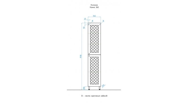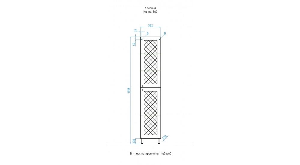 Колонна напольная бренда "Style Line" коллекции "Канна" с современной 3D фрезеровкой фасада, которая придает мебели индивидуальность и особый колорит. Фурнитура - хром, петли на дверцах с механизмом плавного закрывания
