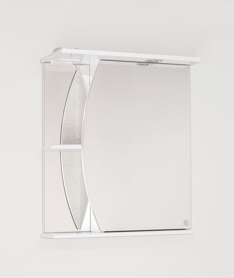 Зеркало-шкаф бренда "Style Line" коллекции "Камелия 60/С" с высокоточной обработкой кромки фацетом и подсветкой. Фурнитура - хром. Кромка зеркала "Камелия 60/С" зашлифована, что защищает от порезов. Лазерная гравировка фирменного логотипа. Край полочек имеет трапецевидную еврокромку. Эксклюзивный декор "Луино" - ламинация внутренней стороны изделия