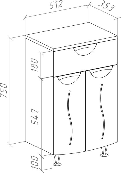 Эргономичное хранение: Распашные дверцы с доводчиками и выдвижной ящик позволяют организовать пространство для косметики, гигиенических принадлежностей и бытовых мелочей.