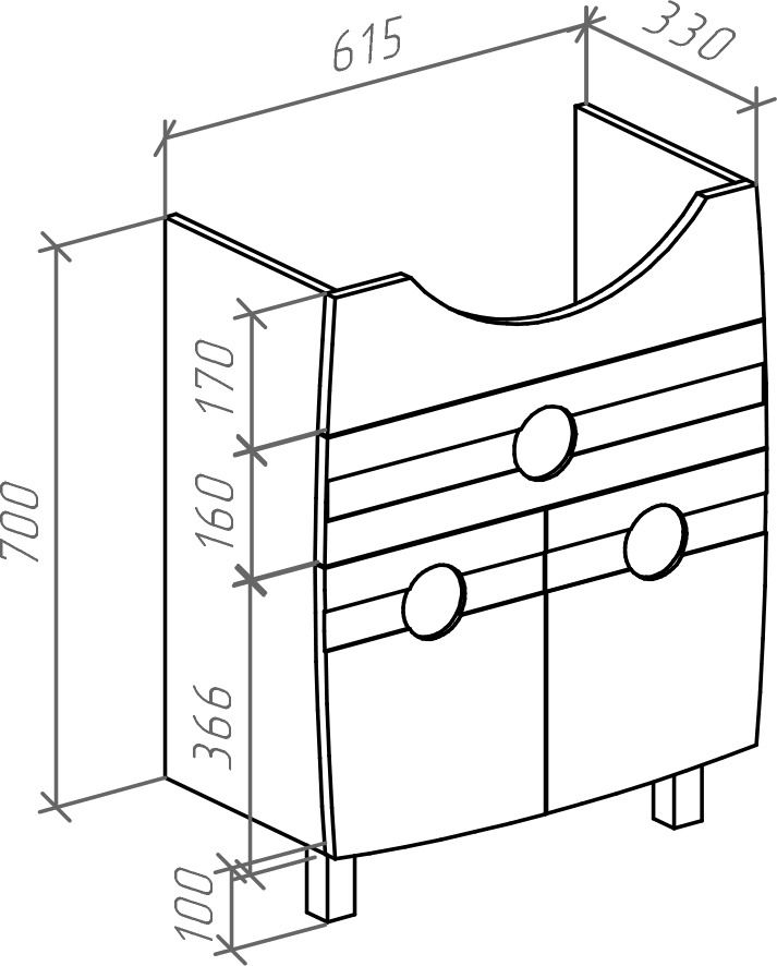 Тумба под раковину Bellezza Абрис 65см белый 00000006112