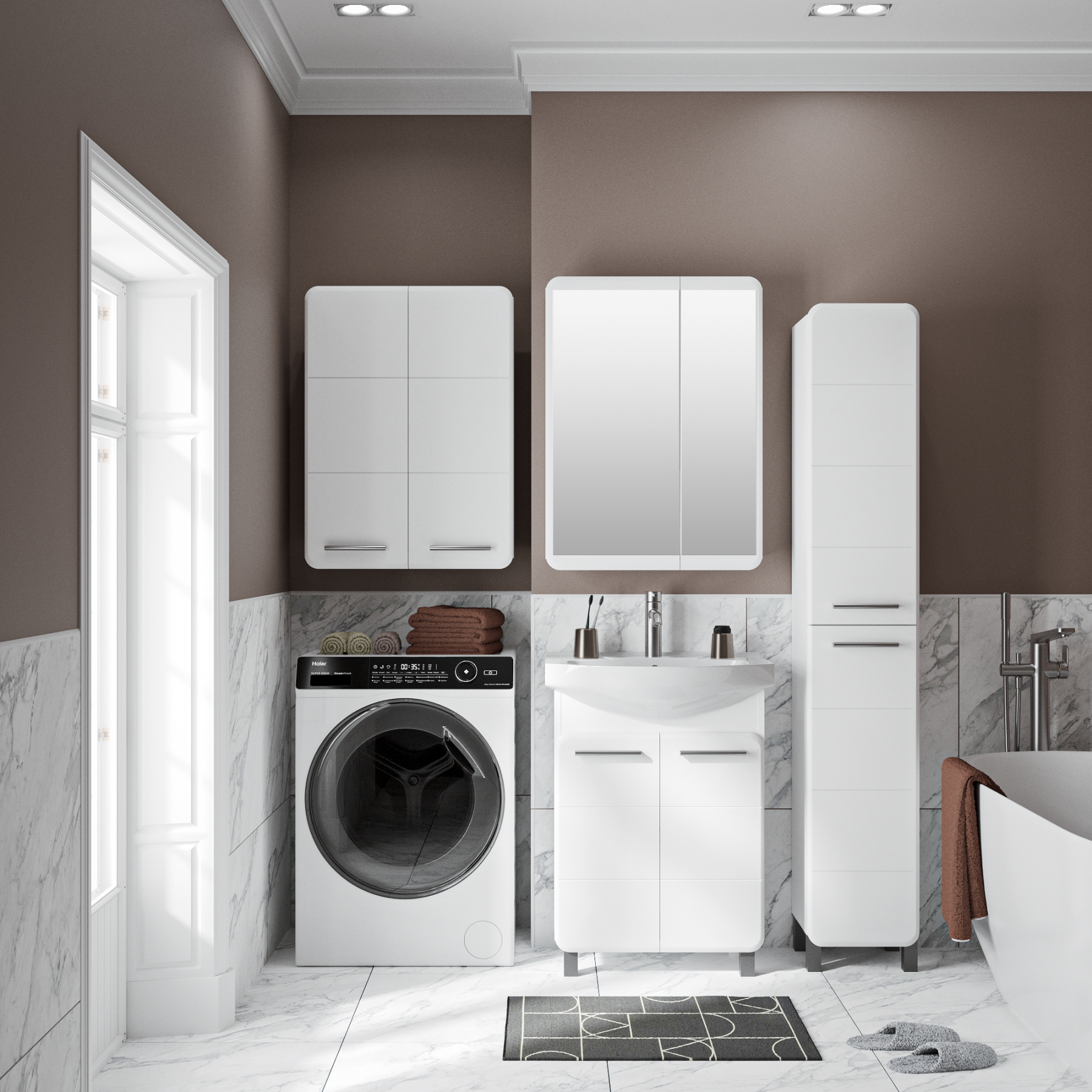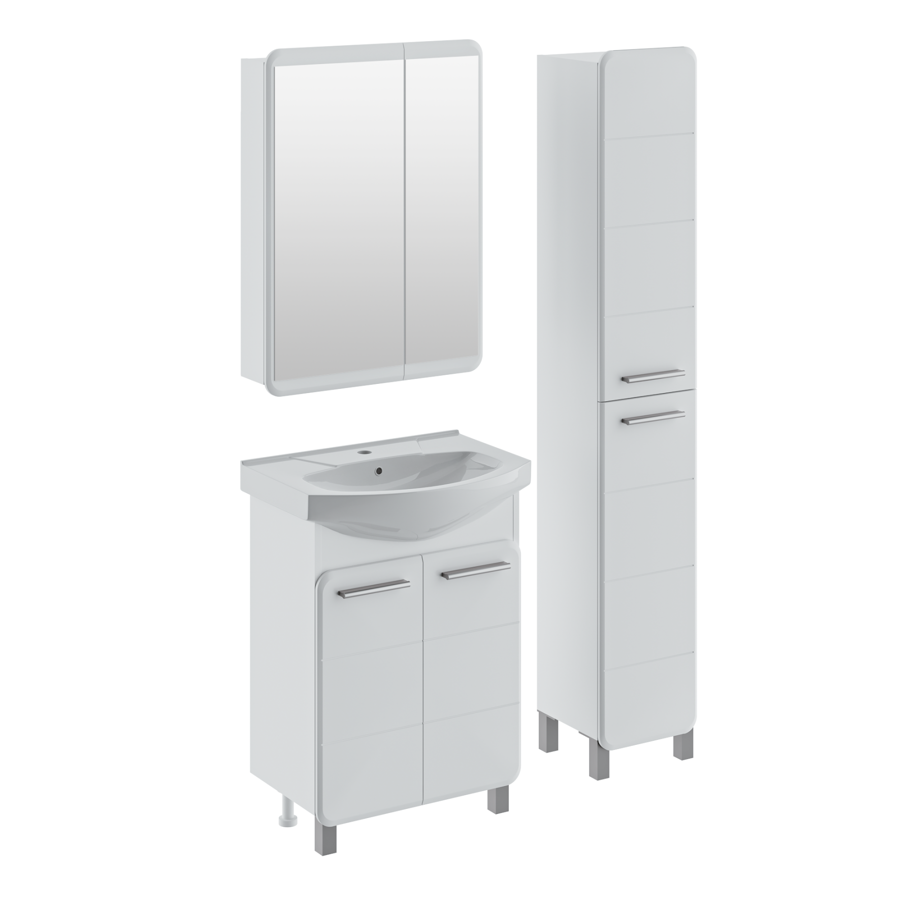 Тумба под раковину ЭРИКА - современный и стильный дизайн в оформлении ванной комнаты. Тумба под раковину ЭРИКА (напольная), выполненная в белом цвете с глянцевым покрытием, инкрустированная квадратной фрезеровкой на фасадах, превосходно украсит любой интерьер ванной комнаты. Тумба в ванную комнату имеет две распашные дверцы и одну встроенную полку. В комплекте к тумбе идут 2 ручки, петли со встроенным доводчиком, 2 хромированные и 2 пластиковые ножки. Мебель для ванной RUNO - красота и практичность в мелочах!