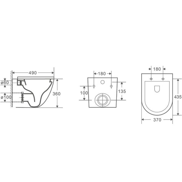 • Прилегание унитаза к стене: