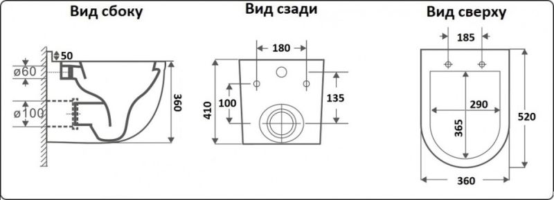 • Прилегание унитаза к стене: