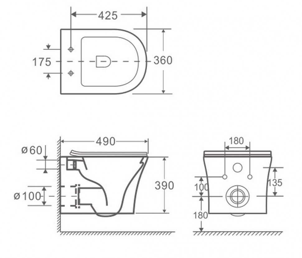 Унитаз CeramaLux 2619E подвесной с сиденьем Микролифт купить