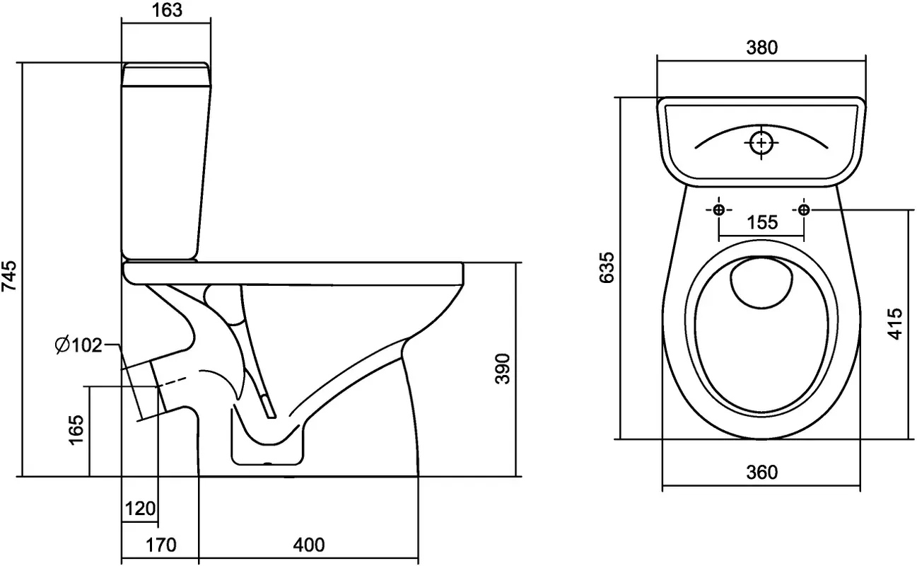 • Укороченный унитаз: