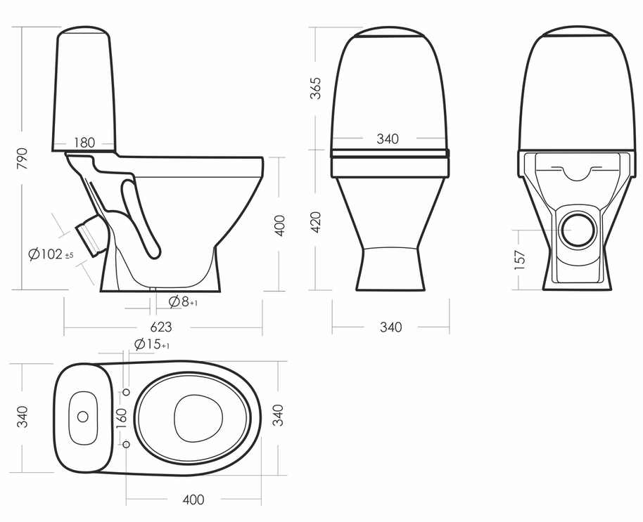 Размеры унитаза-компакта: 340 x 623 x 790