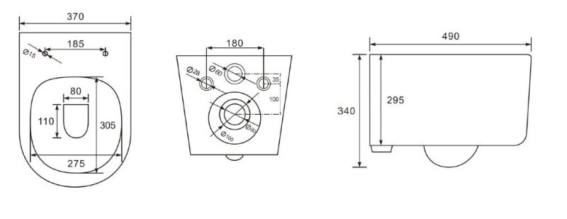 • Прилегание унитаза к стене: