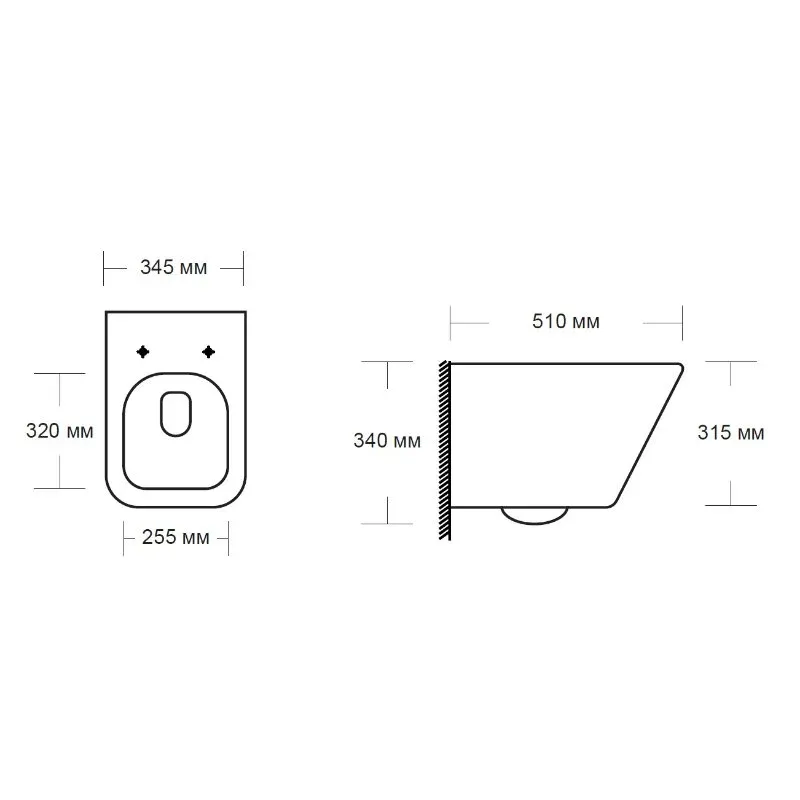 • Прилегание унитаза к стене: