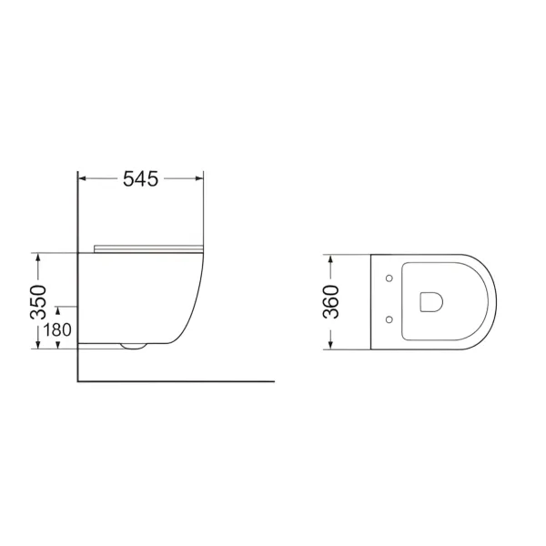 • Прилегание унитаза к стене: