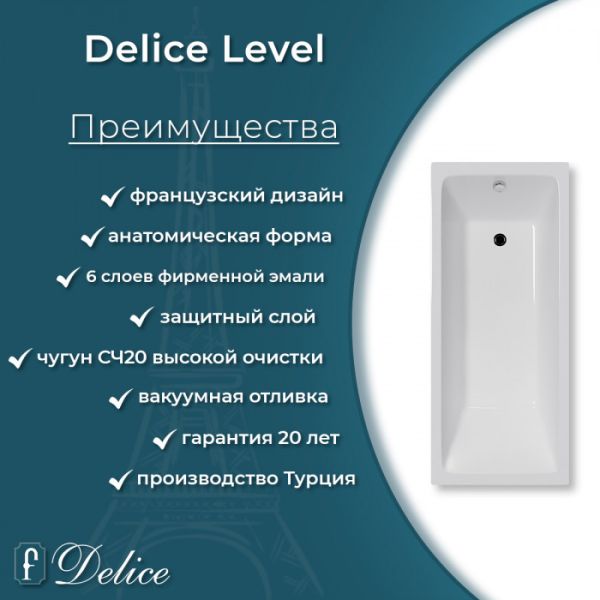 Ванна чугунная Delice Level DLR230602 170х75 купить