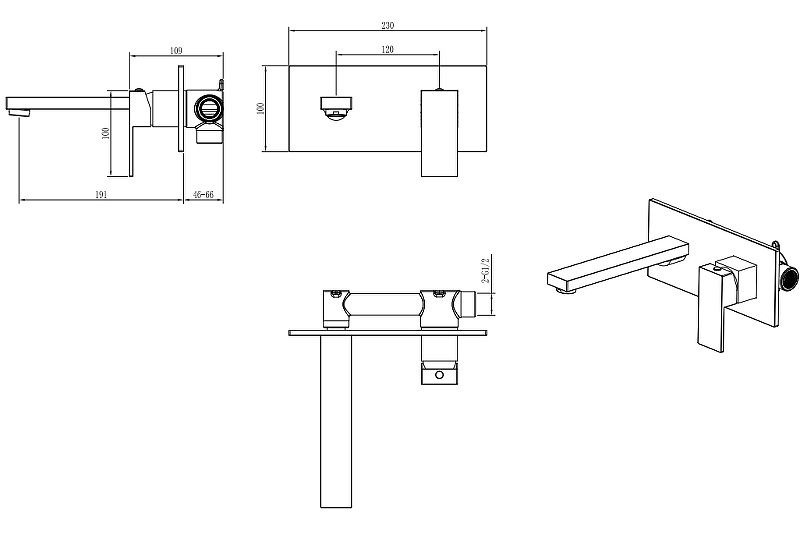 Встраиваемый смеситель для раковины Boheme Qubic 475-BR бронза