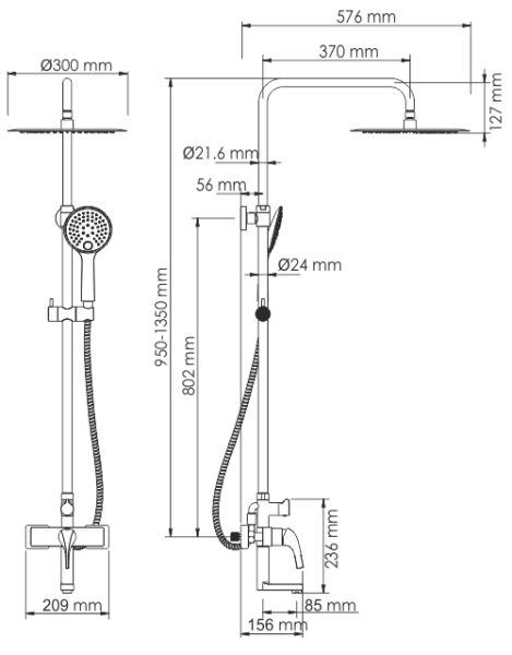 Стойка для душа, Ø 24 мм регулируемая по высоте