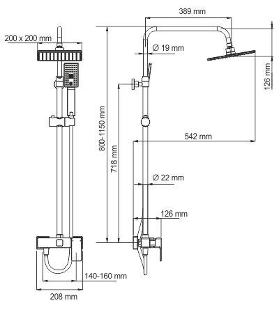 Стойка для душа, Ø 22 мм регулируемая по высоте