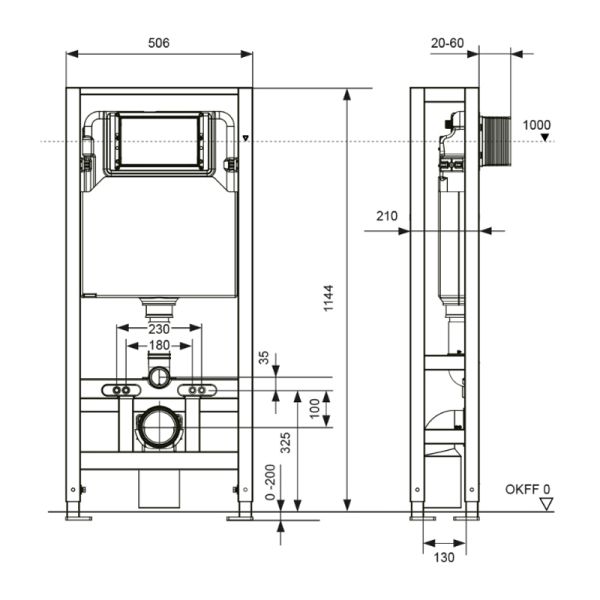 Застенный модуль TECEspring S500393 с двойной рамой 114 см