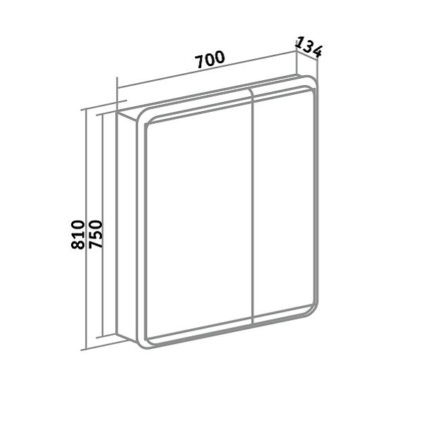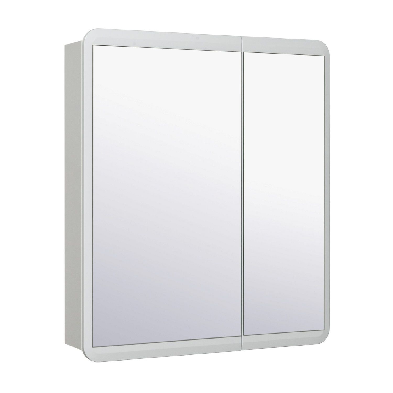 Зеркальный шкаф без подсветки c двумя распашными фасадами. Внутри шкафа - две встроенные полки. Петли со встроенным доводчиком.