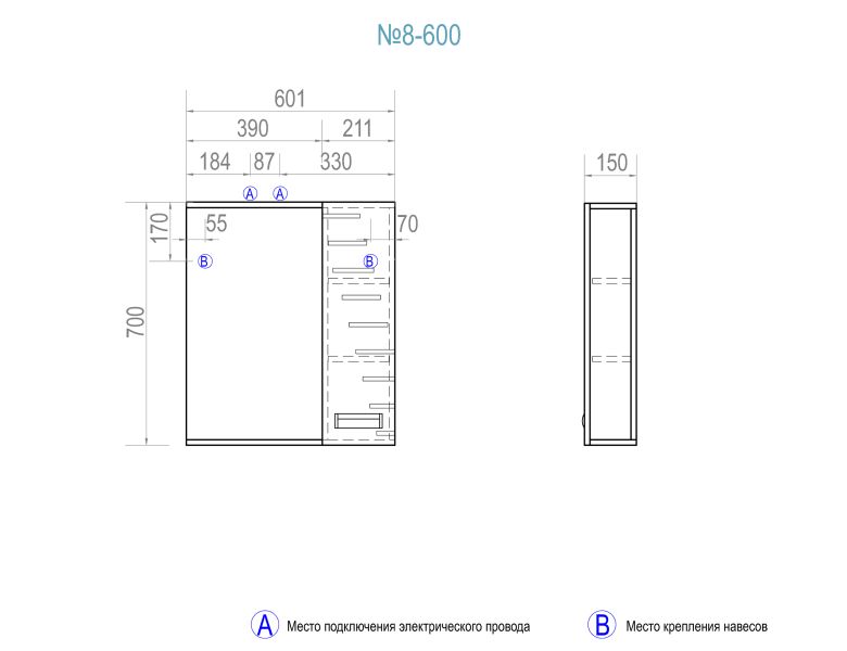 - Тип:зеркало-шкаф
