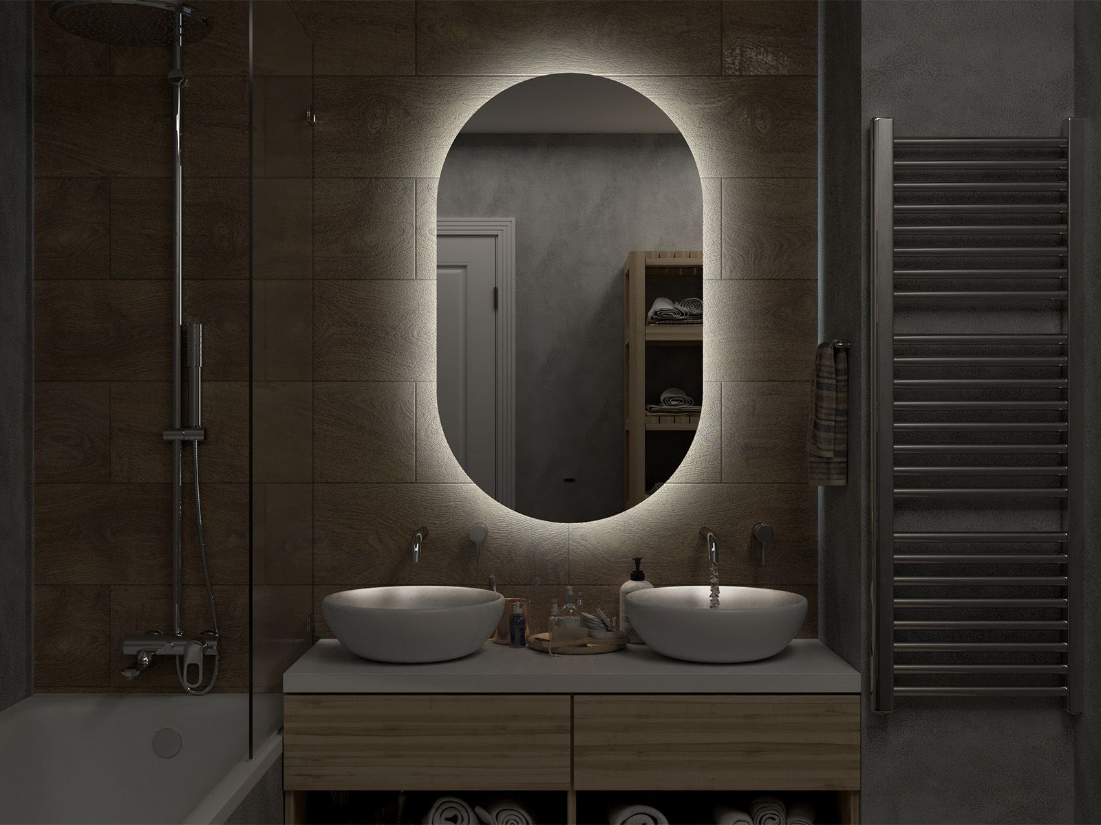 Зеркало с подсветкой для ванной комнаты — это элемент интерьера, который сочетает в себе функции, эстетику и современный дизайн. Его изящная форма и тонкие линии легко вливаются в любое пространство, создавая атмосферу утонченности и уюта.Интегрированная светодиодная подсветка обрамляет зеркало, даря мягкий, рассеянный свет, который не только позволяет удобно наносить макияж, но и наполняет ванную комнату теплом и позитивной энергией.Классический дизайн позволяет использовать его в различных стилях – от минимализма до современного эклектичного оформления. Оно прекрасно вписывается в любую цветовую гамму, будь то нейтральные тона или более яркие акценты.