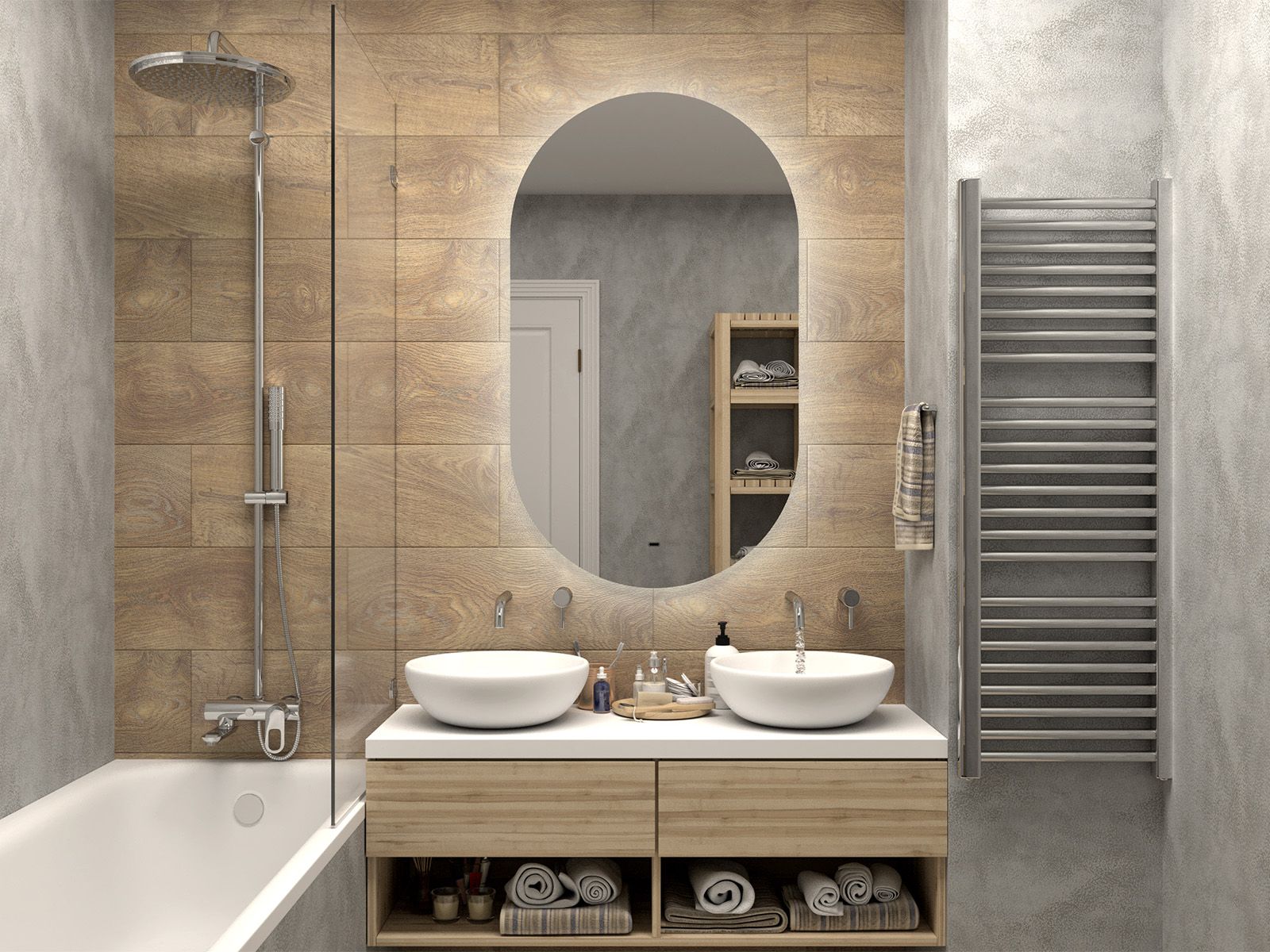 Зеркало с подсветкой для ванной комнаты — это элемент интерьера, который сочетает в себе функции, эстетику и современный дизайн. Его изящная форма и тонкие линии легко вливаются в любое пространство, создавая атмосферу утонченности и уюта.Интегрированная светодиодная подсветка обрамляет зеркало, даря мягкий, рассеянный свет, который не только позволяет удобно наносить макияж, но и наполняет ванную комнату теплом и позитивной энергией.Классический дизайн позволяет использовать его в различных стилях – от минимализма до современного эклектичного оформления. Оно прекрасно вписывается в любую цветовую гамму, будь то нейтральные тона или более яркие акценты.