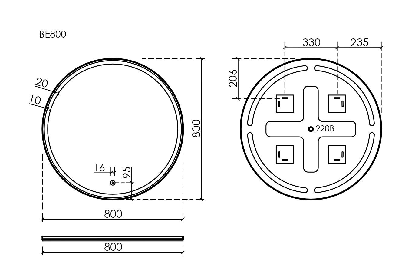 Зеркало с подсветкой Bella 800 мм Зеркало круглое с фронтальной подсветкой Температура с... Подробнее