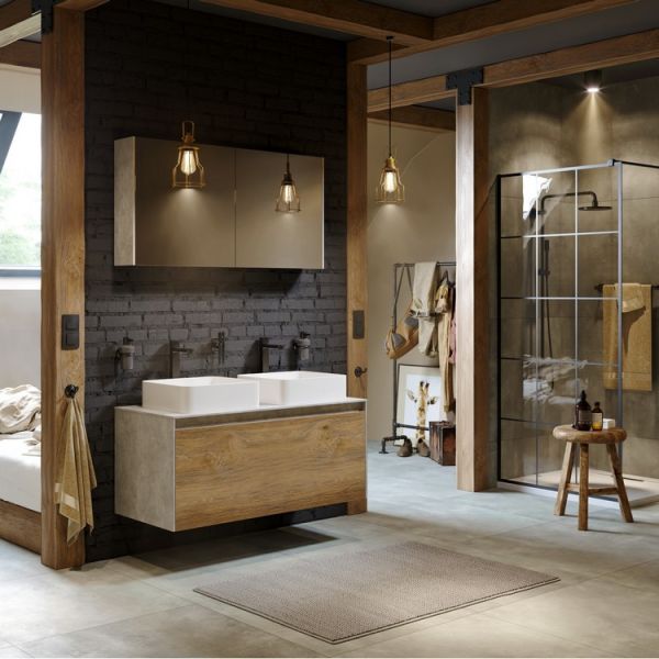 Зеркало-шкаф Aqwella Mobi MOB0412+MOB0717BS 120 смЗеркальный шкаф 120 см с двумя дверьми на петлях с доводчиком. Цвет бетон светлый
